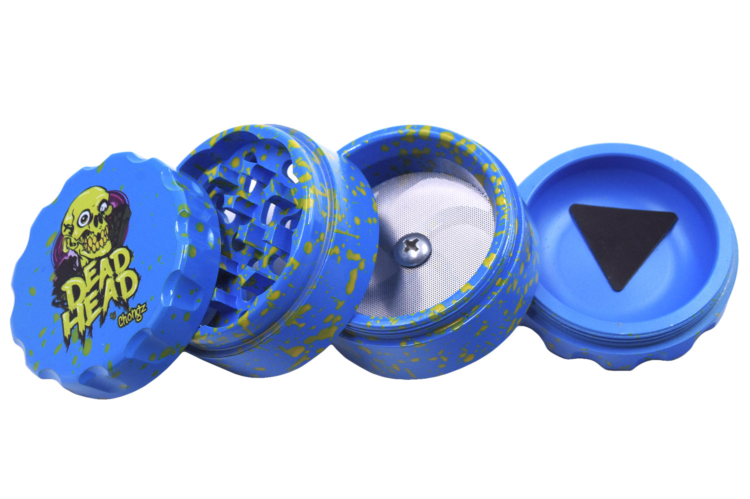 | Splashes of colour are not the only thing that make this grinder stand out from the competition! This 60mm four part aluminium sifter grinder oozes quality from the look, to the feel, to its action as the razor sharp teeth tear mercilessly through even the toughest herb. Dead Head comes to grinding!  |